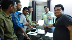 यह है मामलाः- जिले में जिला स्तर से लेकर ग्राम पंचायत स्तर तक महात्मा गांधी नरेगा योजना में संविदा कर्मी कार्यरत है। राज्य सरकार द्वारा वर्ष 2013 में पंचायत राज विभाग द्वारा अधिनस्थ भर्ती के तहत स्थाई पदों हेतु समन्वयक पर्यवेक्षण, समन्वयक प्रशिक्षण, समन्वयक आईईसी, कम्प्यूटर अनुदेशक, कनिष्ठ तकनिकी सहायक, लेखा सहायक, सहायक कार्यक्रम अधिकारी एवं कनिष्ठ लिपिक के पदों हेतु विज्ञप्ति जारी कर डोक्युमेन्ट सत्यापन भी कर लिया। बोनस अंको को लेकर मामला सर्वोच्च न्यायालय में विचाराधीन होने नियुक्ति प्रक्रिया रोक लगा दी गयी। सर्वोच्च न्यायालय दिल्ली द्वारा बोनस अंक के विवाद का निस्तारण सरकार को भर्ती प्रक्रिया प्रारम्भ करने के निर्देश नवम्बर 2016 में ही दे दिये गए। परन्तु राज्य सरकार द्वारा आजदिनांक तक भी भर्ती प्रक्रिया को लेकर कोई निर्णय नही करने से संविदा कार्मिकों ने सरकार का ध्यान खिचने एवं समस्याओं से अवगत कराने हेतु शुक्रवार सामुहिक अवकाश एवं भर्ती प्रक्रिया शुरू नही करने पर 22 मार्च को सामूहिक अवकाश लेकर जयपुर पहुंचकर विधान सभा का घेराव करेगें।