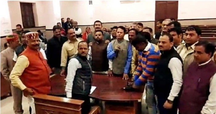 वार्डों में विकास कार्यों से नाराज सत्ताधारी पार्षदों ने सदन में धरना शुरू कर दिया। उपमहापौर अशोक आचार्य सहित भाजपा के आधा दर्जन से ज्यादा पार्षदों ने अपने अपने वार्डों में विकास कार्य नहीं होने पर नाराजगी जताई और पिछले चार वर्षों में महापौर पर पार्षदों की उपेक्षा का आरोप लगाया। भाजपा पार्षदों ने महापौर नारायण चोपडा की कार्यशैली के विरोध लगाकर सदन की कार्यवाही एकबारगी रोक दी।