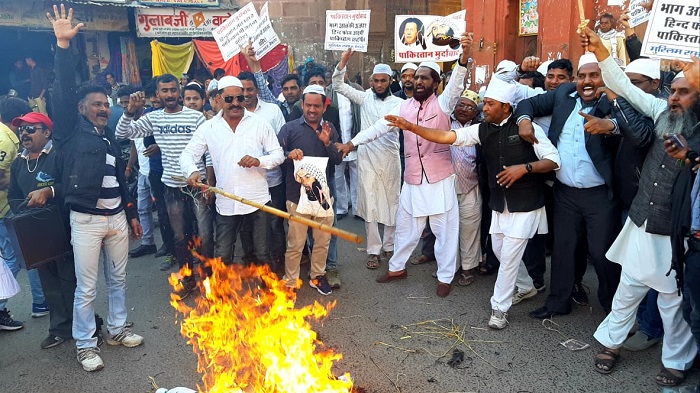 में सीआरपीएफ़ के काफिले पर हुए हमले के विरोध में 16 फरवरी को बीकानेर के कोटगेट पर पाकिस्तान के मसद अजहर का पुतला