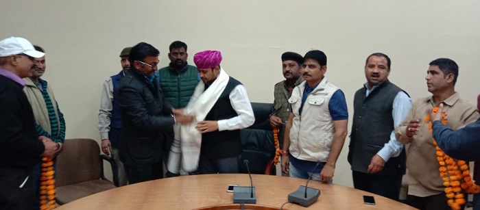 जैसलमेर राज्यपाल से गणतंत्र दिवस पर योग्यता प्रमाण पत्र से सम्मानित हुए जिला कलेक्टर नमित मेहता का जैसलमेर लौटने पर मंगलवार को कॉन्फ्रेंस हॉल में सामाजिक सरोकार और नवाचार के प्रतीक ग्रुप फ़ॉर पीपल जेसलमेर टीम द्वारा अभिनन्दन किया गया।।ग्रुप संयोजक चन्दन सिंह भाटी,अध्यक्ष मुकेश ग़ज़्ज़ा,भँवर सिंह साधना,मनोज आर भाटिया,राजेन्द्र सिंह चौहान,मांगीलाल सोलंकी,नवीन भाटिया,जितेंद्र खत्री,गणपत सिंह सोलंकी,नवीन वाधवानी,प्रदीप गौड़,प्रदीप सिंह भाटी,मोहित वासु,पवन पंवार,सहित ग्रुप के सदस्यो ने नमित मेहता का साफा पहना,शॉल ओढ़ाकर बहुमान किया।।जिला कलेक्टर नमित मेहता ने कहा कि आप लोगो के सकारात्मक सहयोग से कार्य करने का हौसला बढ़ता है।।उन्होंने भावुक होकर कहा कि आप लोगो ने जो मान सम्मान दिया उससे मेरा दायित्व और बढ़ जाताहै जेसलमेर के बिकास के प्रति।।सभी सदस्यो ने जिला कलेक्टर का माल्यार्पण कर अभिनन्दन किया।।