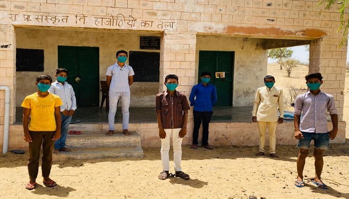 ग्राम पंचायत मीठड़ा व हाजाणियों की ढाणी में मास्क व सेनेटाइजर वितरित किए