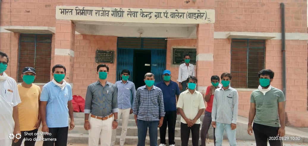 बाड़मेर विधानसभा क्षेत्र की ग्राम पंचायत बालेरा में मास्क व सेनेटाइजर किए वितरित