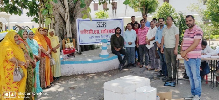 सुबह 9 बजे से 2 बजे तक चले इस अनौपचारिक रक्तदान शिविर में शहीद चंदन सिंह जी राठौड़ को श्रद्धासुमन अर्पित करते हुए 51 रक्तवीरों ने रक्तदान कर स्वयं को गौरवान्वित महसूस किया। अब तक सौ बार रक्तदान कर चुके रविन्द्रपाल सिंह कप्पू जी ने एक शहीद की स्मृति में आयोजित इस रक्तदान शिविर को सराहनीय कार्य बताया। इस अवसर पर लक्ष्मण गुर्जर, महेंद्र सिंह राणावत, रुकमण राठौड़, सुरेंद्र सिंह राठौड़, महेंद्र सिंह झाला, शिव कुंवर , राणावत, मदन कुमावत, प्रवीण पुरोहित, शंकर सिंह राठौड़, रेणु राठौड़ आदि उपस्थित रहें।