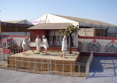 २. जब सफ़ेद रण के मुख्य द्वार से अन्दर पहुंचे तो एक बहुत ही विशाल शहरनुमा नज़ारा दिखा जहाँ सब कुछ टेंटों से बनाया हुआ था, पक्का निर्माण कहीं नहीं था. रहने के लिए ५०००/ प्रति दिन से लेकर एक लाख रुपए प्रति दिन के फाइव स्टार टेंट भी उपलब्ध थे. बड़े बड़े बाज़ार दोनों ओर बने थे जहाँ हाथ करघा, क्राफ्ट, आर्ट, बैंक, ऐ.टी.एम्, खाने पीने के स्टाल, आकर्षक झांकियां जिनमे स्वच्छ भारत, मेक इन इंडिया आदि के सन्देश थे. इनमें सबसे आकर्षक सीन था महात्मा गाँधी की मूर्ति को हाथ में झाड़ू लेकर सफाई करते हुए दिखाया जाना.